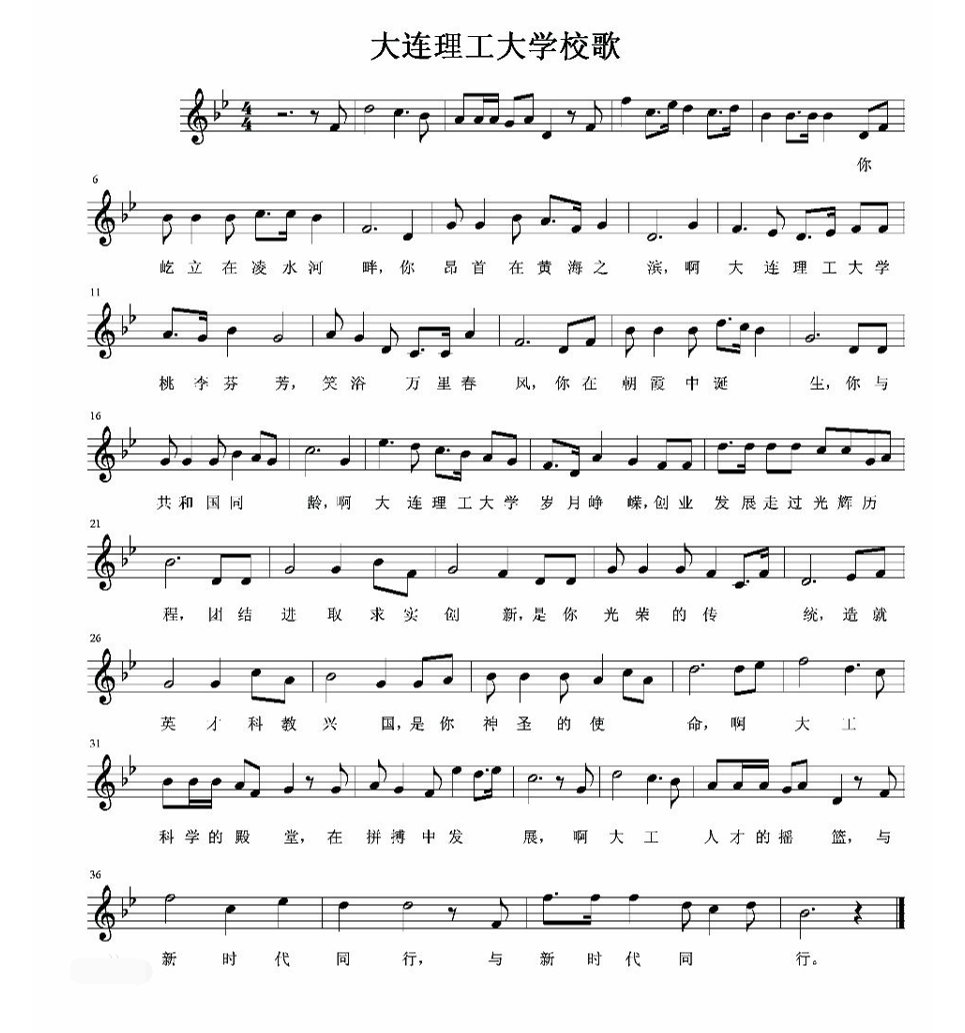 《大連理工大學校歌》由劉健、王續琨作詞、鄭述誠作曲,于1999年創作完成。