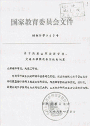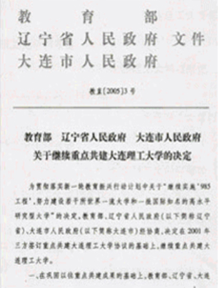 教育部、遼寧省、大連市重點共建大連理工大學,實施“985工程”一期建設